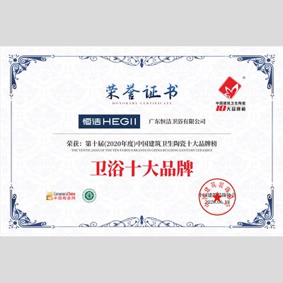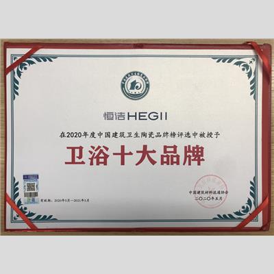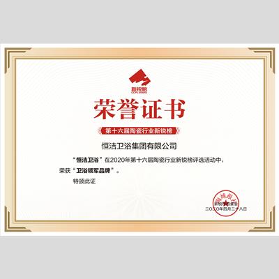 獎 項:衛(wèi)浴領(lǐng)軍品牌——恒潔