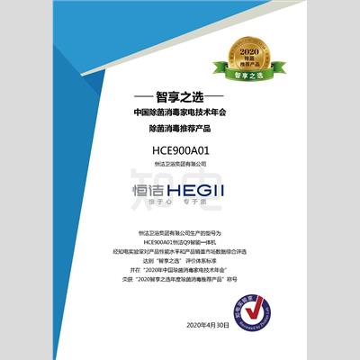 獎 項:【智享之選】除菌消毒推薦產(chǎn)品——恒潔Q9智能一體機(jī)