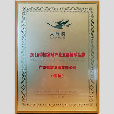獎 項:大雁獎 2016中國家居產(chǎn)業(yè)衛(wèi)浴領(lǐng)軍品牌