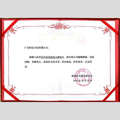 頒發(fā)單位:新疆紅石慈善基金會(huì)