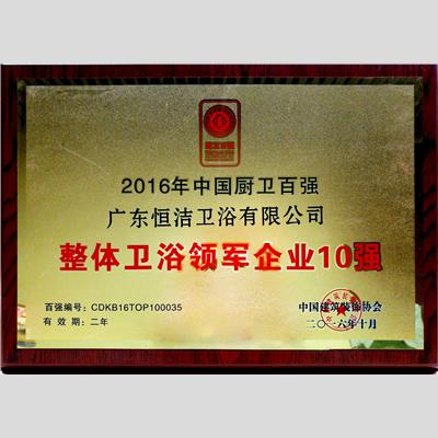 獎(jiǎng) 項(xiàng):2016年中國廚衛(wèi)百強(qiáng) 整體衛(wèi)浴領(lǐng)軍企業(yè)10強(qiáng)