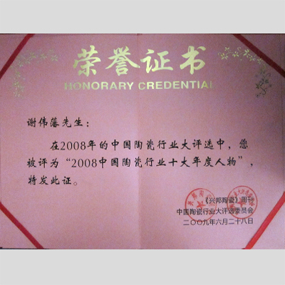 獎 項:2008中國陶瓷行業(yè)十大年度人物