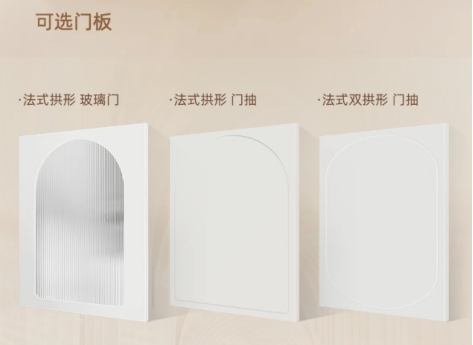 在造型上,恒潔繁花系列同樣兼具美學(xué)感與實用性。它提供豐富的門板樣式:法式拱形+長虹玻璃門、法式拱形門抽、法式雙拱門抽等,多樣的造型選項,既能滿足不同用戶的審美偏好,也能根據(jù)衛(wèi)生間空間大小靈活適配,讓“好看”與“好用”不再沖突。