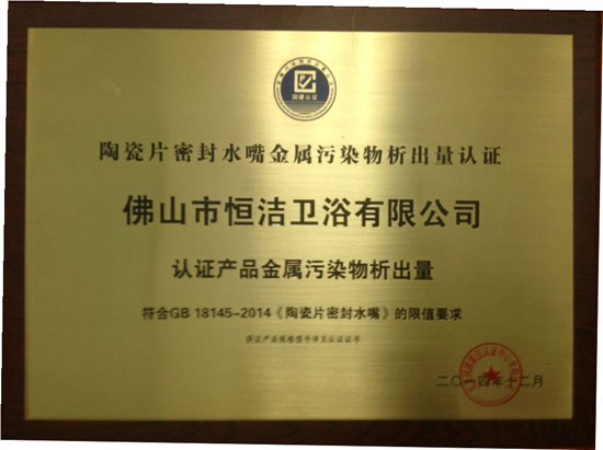 2014年12月1日,水龍頭新國標出臺,恒潔衛(wèi)浴等29家企業(yè)獲得《陶瓷片密封水嘴金屬污染物析出限值》認證,恒潔衛(wèi)浴“以用戶需求為導(dǎo)向”的“最嚴堅持”得到了國家權(quán)威機構(gòu)的肯定和贊許。