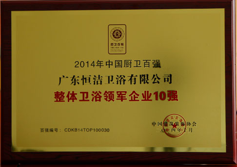 恒潔衛(wèi)浴再攬“中國廚衛(wèi)百強整體衛(wèi)浴領(lǐng)軍企業(yè)10強”殊榮