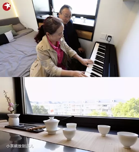 爺爺奶奶的臥室更是別有一番情調(diào),特別為奶奶準(zhǔn)備的電子鋼琴,得以滿足奶奶每天早上練琴的習(xí)慣,窗臺的茶具也給了爺爺自己鐘情的享樂天地。