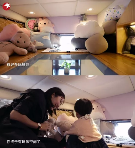 設(shè)計師根據(jù)全家人的身高比,在客廳上方隔出了一個可利用夾層,為米寶打造了一個屬于自己的游樂場,讓孩子也有了屬于自己的玩??臻g。