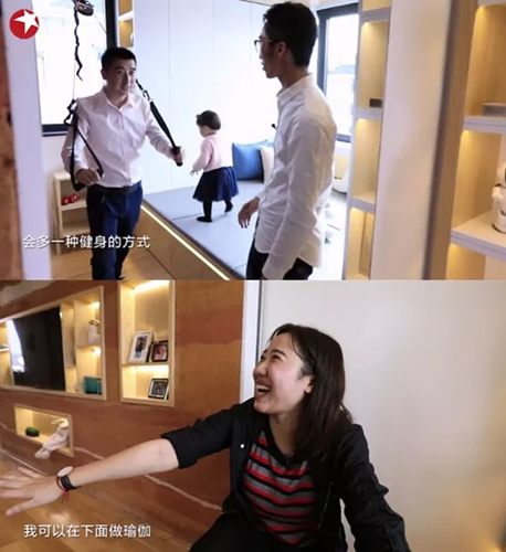 從過去的健身器材無處安放,到現(xiàn)在有了自己的收納箱,讓爸爸每天舉啞鈴鍛煉更方便,設(shè)計師還特別在窗臺上設(shè)計了一個掛鉤便于拉伸鍛煉,讓爸爸有了更多的健身選擇。媽媽的瑜伽墊也終于有了展開的空間。