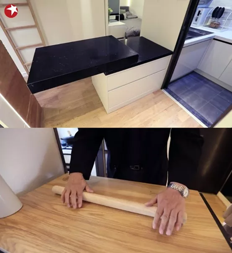 設(shè)計師親自前往爺爺奶奶的家鄉(xiāng)甘肅張掖后,切身體會到了面食對于他們的重要性,了解到一個面積足夠大的搟面臺,對于爺爺有多重要。于是設(shè)計師根據(jù)爺爺?shù)氖褂昧?xí)慣,量身定制了一張折疊式面臺,讓爺爺可以充分釋放對于面食的熱愛。