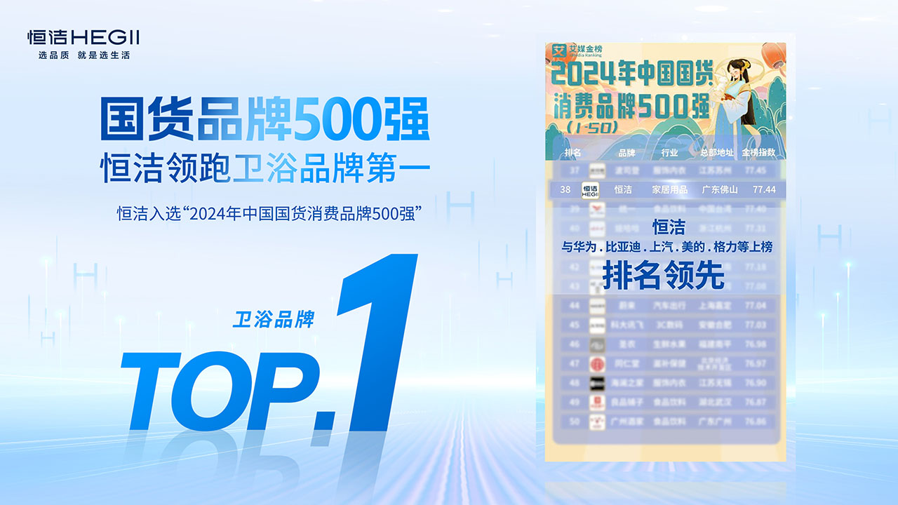 恒潔入選“2024年中國國貨消費品牌500強”