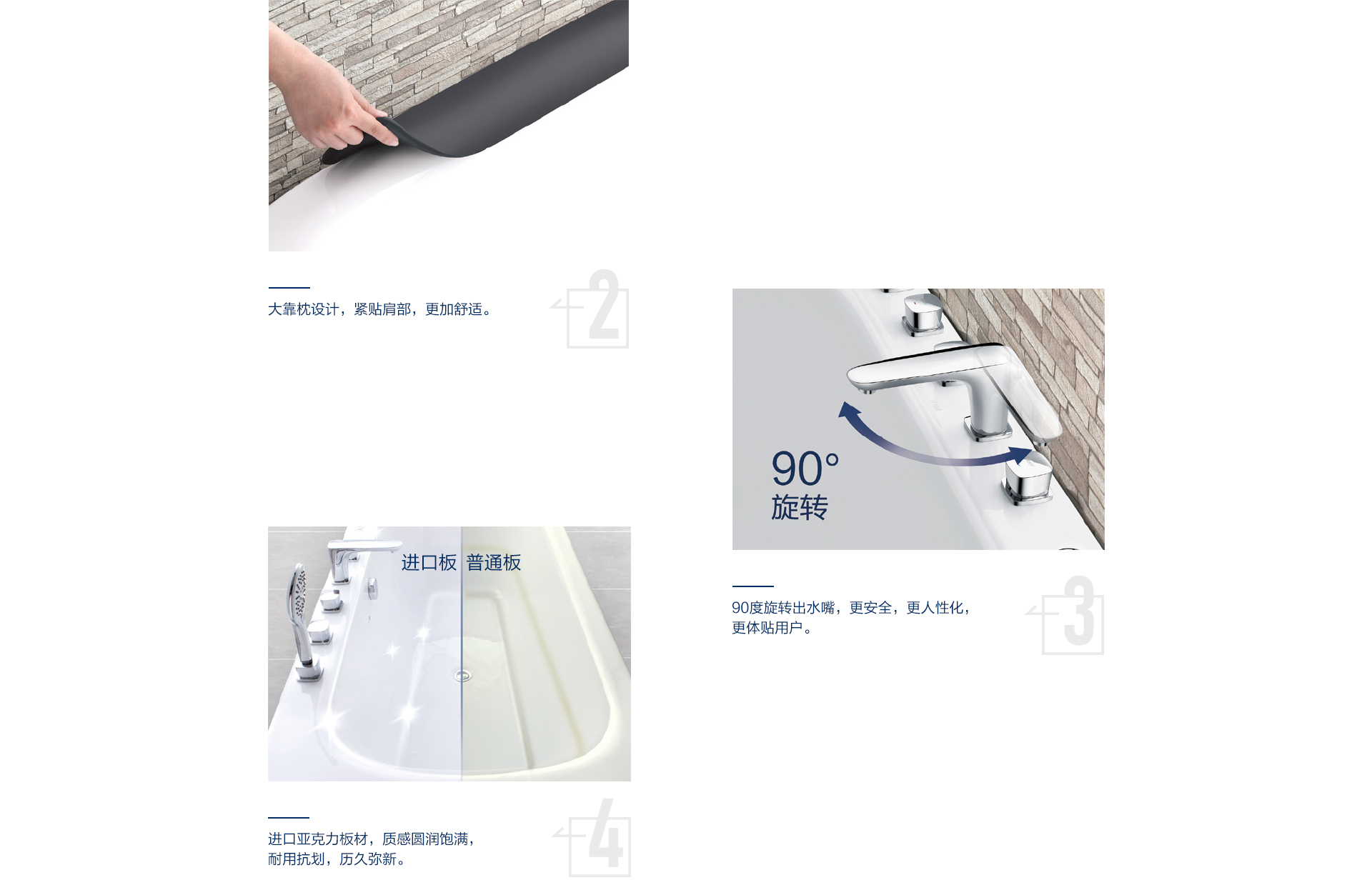 勁速?zèng)_浪按摩系統(tǒng)、微泡泡按摩系統(tǒng)及汽泡按摩系統(tǒng)三件模式供你選擇,讓你隨心所浴,樂享水悅生活