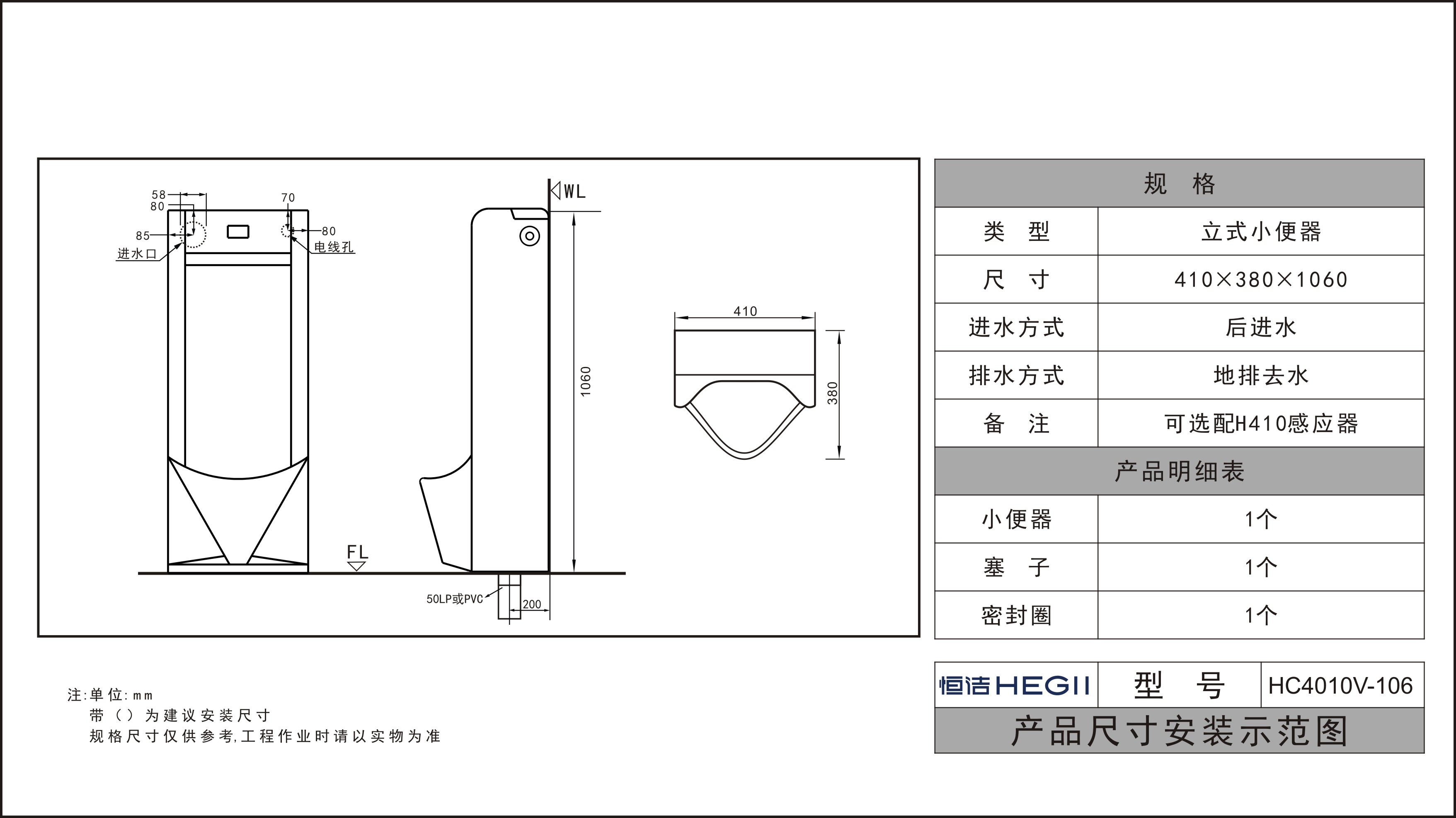 HC4010V-106一體感應(yīng)立式小便斗