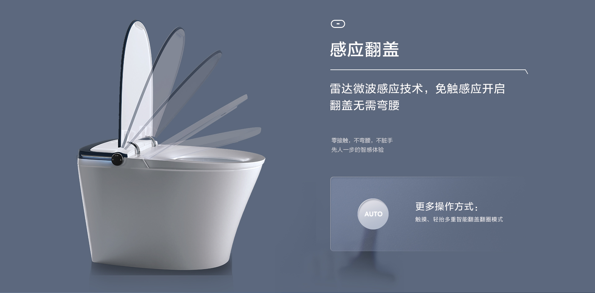 感應(yīng)翻蓋:雷達微波感應(yīng)技術(shù),免觸感應(yīng)開啟,翻蓋無需彎腰