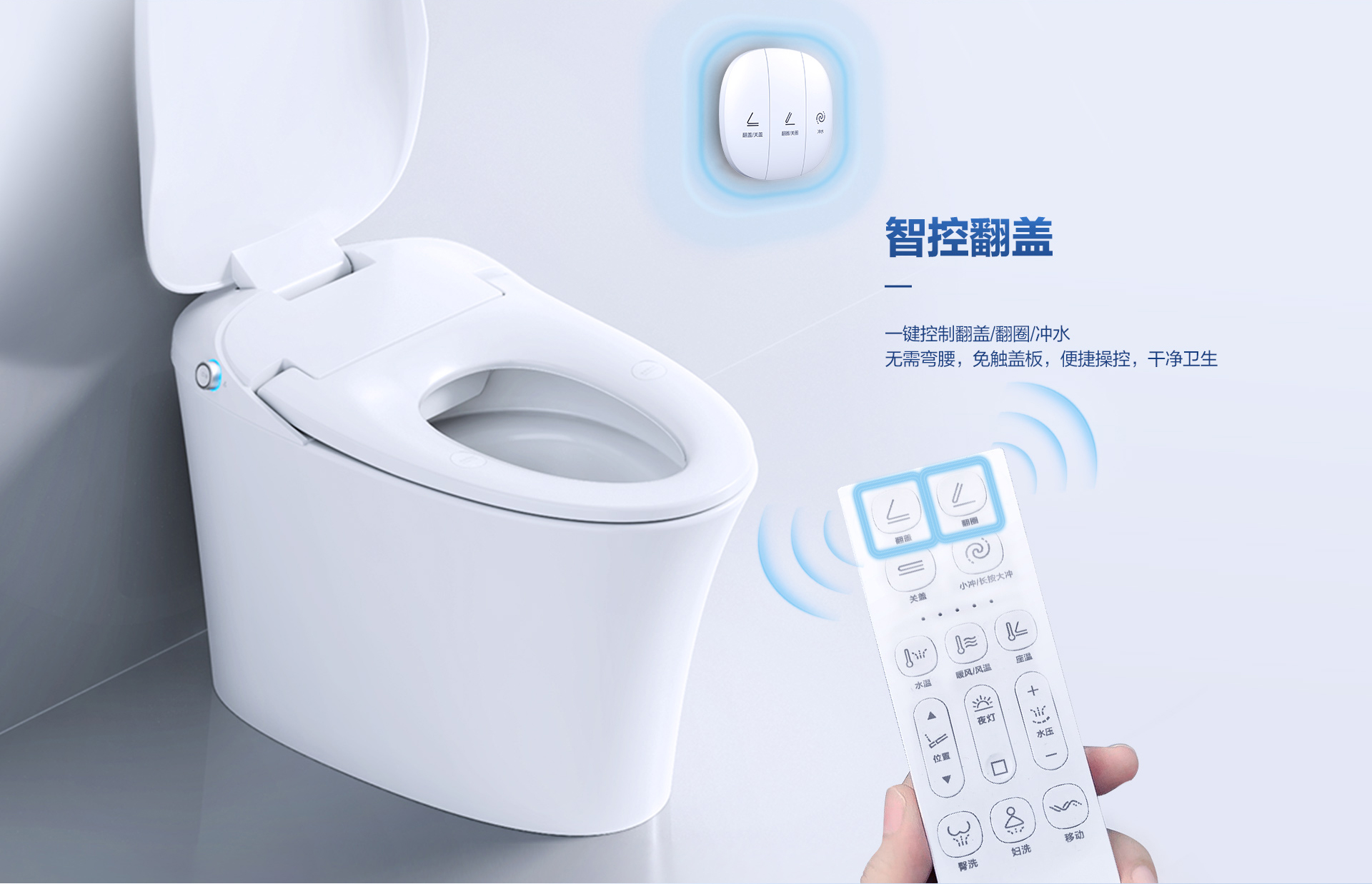 翻蓋翻圈:智能遙控開啟,翻蓋無需彎腰,如廁便捷衛(wèi)生