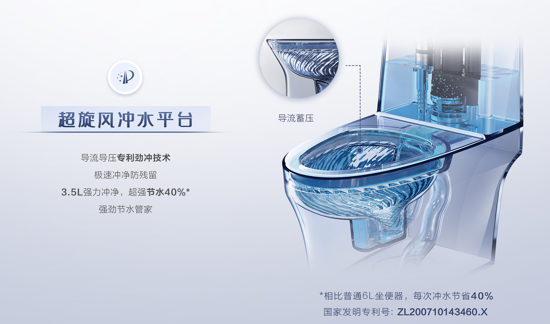 國(guó)家發(fā)明專利,3/4.5L超節(jié)水馬桶